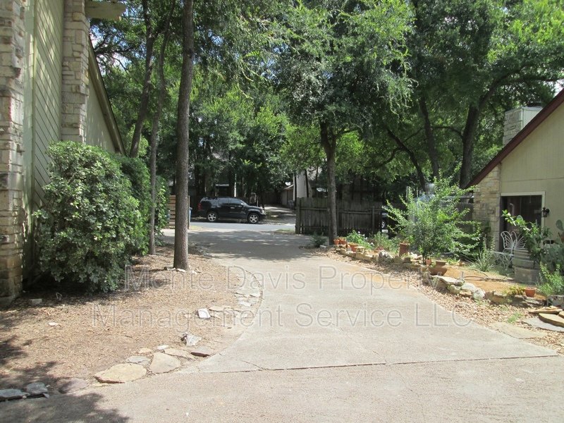 Just a short distance to S Lamar and all that it offers. Charming efficiency above the carport with a wooded creek view! NOTE: Allocated utilities for shared meter.