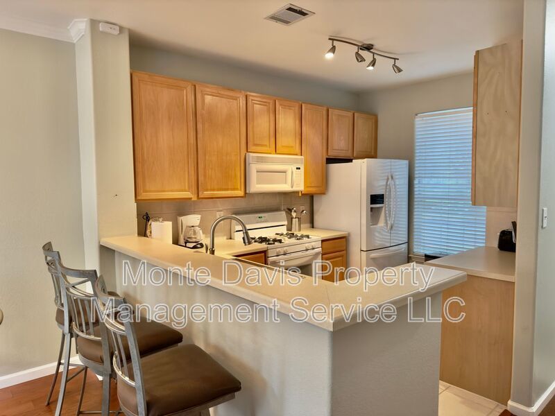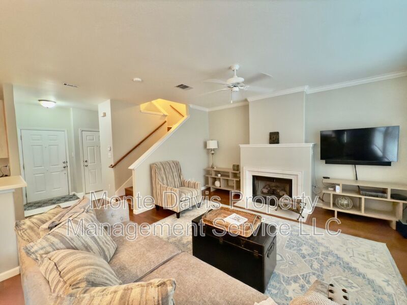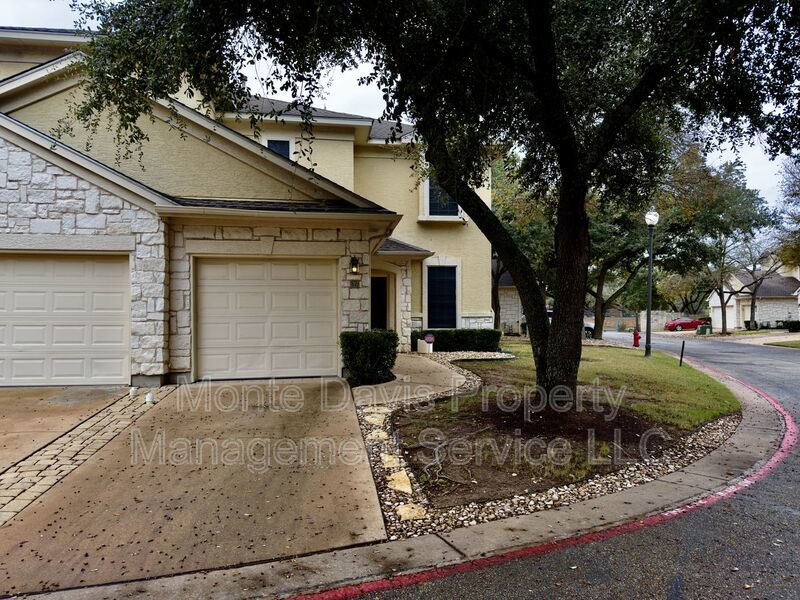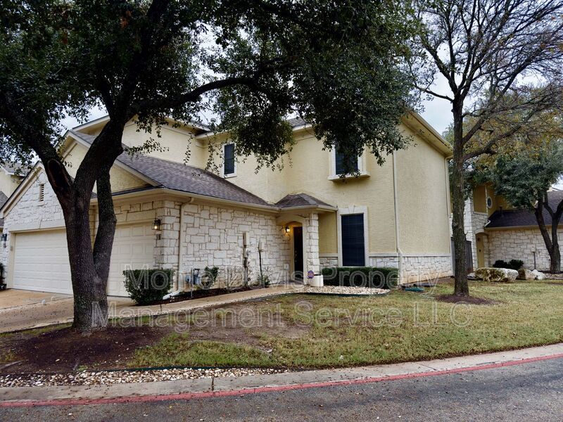 Beautiful two-story townhome in the gated Westcreek Ranch community! Open floor plan. Living room features a high ceiling, crown molding, fireplace, and natural light. Eat-in kitchen with abundant storage space, gas stove, and bar. Ceiling fans and blinds throughout. A half bath is available downstairs for your convenience, with 2 bedrooms, 2 full baths, and washer and dryer upstairs. The primary has a spacious walk-in closet and ensuite bath with dual vanity. Engineered hardwood throughout, carpeted bedrooms, and tile bathrooms. 1-car garage, and a low-maintenance backyard with wood privacy fence. Enjoy a lock-and-leave community where the HOA fee covers water, trash, recycling, pool, and front yard maintenance. Conveniently located just minutes from MoPac and 290, Sunset Valley Shopping Center, and numerous restaurants. 15 minutes to downtown Austin. 20 minutes to the airport!